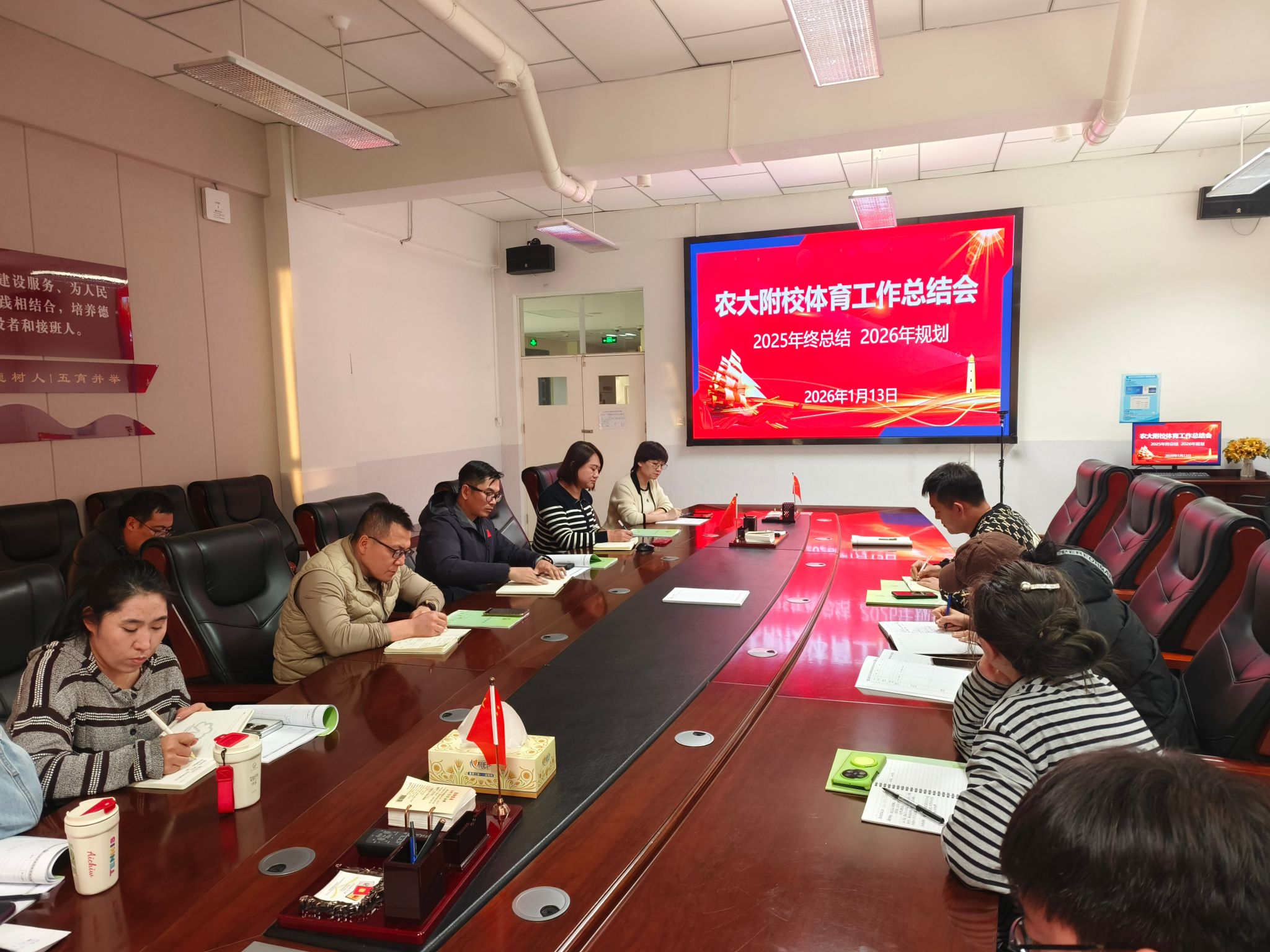 2026年1月13日下午,在励志楼611会议室召开会议,回顾2025年体育工作并部署2026年规划。胡燕副校长出席会议,体育组全体教师参加,会议由张琦老师主持。