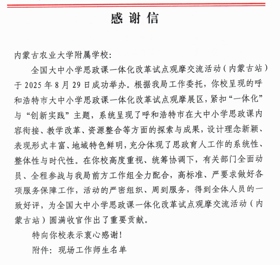 8月29日“全国大中小学思政课一体化改革试点观摩交流活动(内蒙古站)在呼和浩特举行。